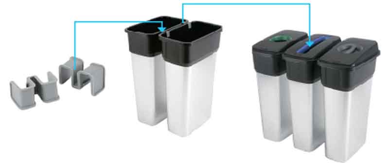 При помощи специальных коннекторов контейнеры можно объединить в единую устойчивую и аккуратную конструкцию - сортировочную станцию.
