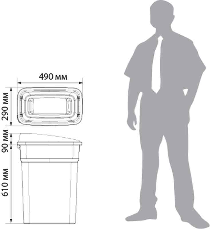 Особенности дизайна: встроенная эргономичная ручка, резиновые ножки из 100% термоэластопласта, держатель мусорного пакета.