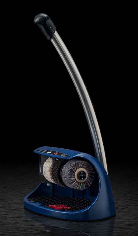 Основное отличие — хромированная штанга — поручень с контактным выключателем, которая позволяет сохранить устойчивость положения при чистке обуви. Благодаря этому удается избежать отпечатков ладони на стене за машиной, оставляемых теми пользователями, которым необходимо во время чистки обуви поддерживаться. Нажатием на контактную включающую рукоятку происходит либо включение машинки, а отключение при отпускании рукоятки.