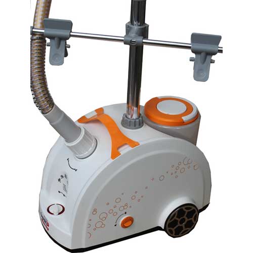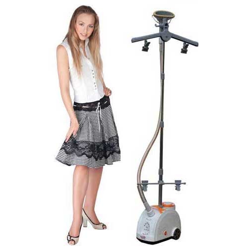 Аппарат очень просто собирается и уже спустя считанные секунды после включения полностью готов к работе. Четыре режима работы гарантируют, что вы всегда сможете настроить модель под особенности той или иной ткани. Чтобы разгладить платье или блузку, просто повесьте их на вешалку на стойку, которая прилагается к модели и наведите на изделие утюжок. Сильный поток пара в кратчайший срок приведет в порядок вещь, при этом вы избавлены от риска испортить предметы одежды – обработка паром исключает касание изделий поверхностью утюга, и как следствие, вероятность оставить подпалины. Чтобы лучше отутюжить карманы, воротники и прочие мелкие детали платьев, рубашек, юбок и блузок, в комплекте с прибором поставляется сразу несколько очень полезных аксессуаров. В частности, очень удобна специальная досочка, надеваемая на руку – подкладывая ее одежду, вы сможете отпарить наиболее трудные места. Полезны и зажимы для натягивания брюк или других участков одежды, также имеется щеточка для чистки пыли и ворсинок, и рукавица, которая призвана защищать вашу руку от ожогов паром во время работы.