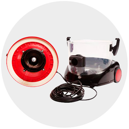 Удалять до 99,9% частиц пыли у модели получается не счет фильтров или мешков для сбора пыли. Аппарат использует воду как поглощающий и фильтрующий элемент в связке с сепаратором, который, стремительно вращаясь, не оставляет шанса пыли и грязи. В итоге те, намокнув, обратно в комнату уже не попадают. Таким образом аппарат задерживает, в том числе, шерсть и пух домашних питомцев, а также разнообразные аллергены, которыми мы и наши дети дышим ежедневно.