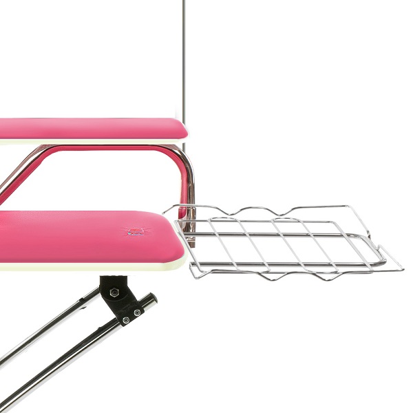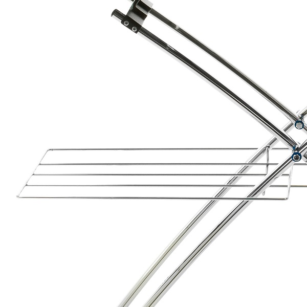 Ножки гладильной доски MIE Prestige изготовлены из хромированного металла. На передних ножках расположены колеса, на задних – противоскользящие накладки. Для быстрого перемещения сложенной гладильной доски нужно слегка наклонить ее вперед и просто катить по полу. Дизайн ножек гладильной доски MIE Prestige необычный и элегантный. Ножки этой гладильной доски двойные, слегка выгнуты и соединены между собой внизу для устойчивости доски.