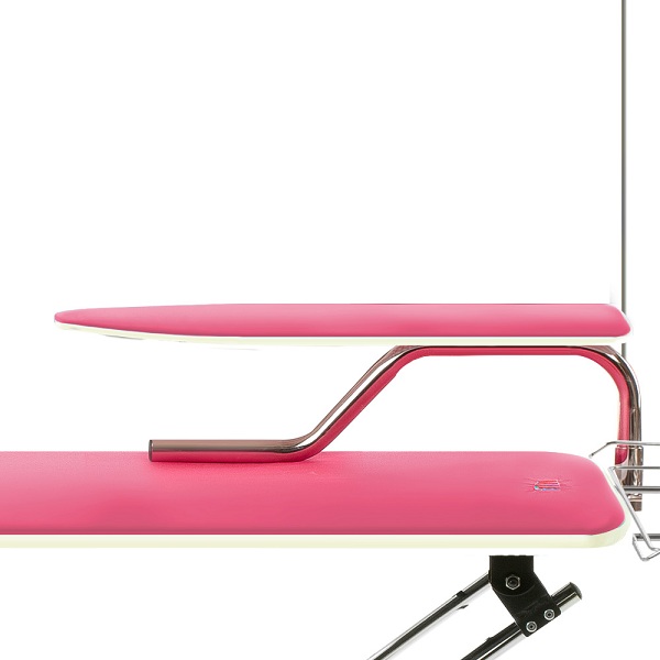 Один край гладильной доски заострен и вытянут сильнее обычного. Такая треугольная форма одного края доски позволяет «надеть» на доску вещи, которые необходимо отгладить по очереди с каждой стороны, например, футболки с рисунком, вещи с декоративной отделкой, детские вещи и другое. Высота гладильной доски регулируется в диапазоне 74 – 97 см. (8 позиций).