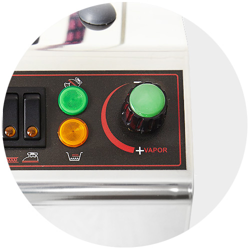 Во время работы парогенератора будь то глажение, вертикальное отпаривание или паровая чистка, с помощью регулятора пара, который находится на корпусе парогенератора, можно выбирать интенсивность паровой струи.