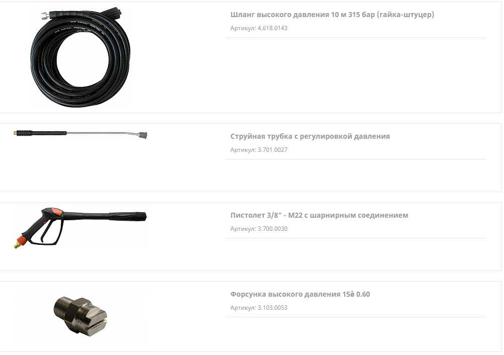 использование моющего средства, помпа с гибкой муфтой (повышенный ресурс), с водяным охлаждением, транспортировочные колеса |