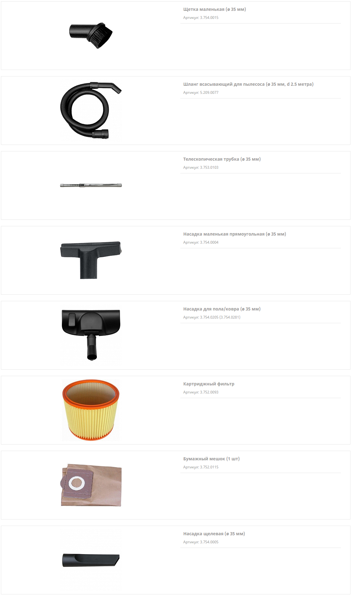 Система фильтров обеспечивает качественную фильтрацию выходящего воздуха. В стандартное оснащение пылесоса входит картриджный фильтр и мешок для сбора пыли. В комплект включен полный набор насадок необходимых для работы.
