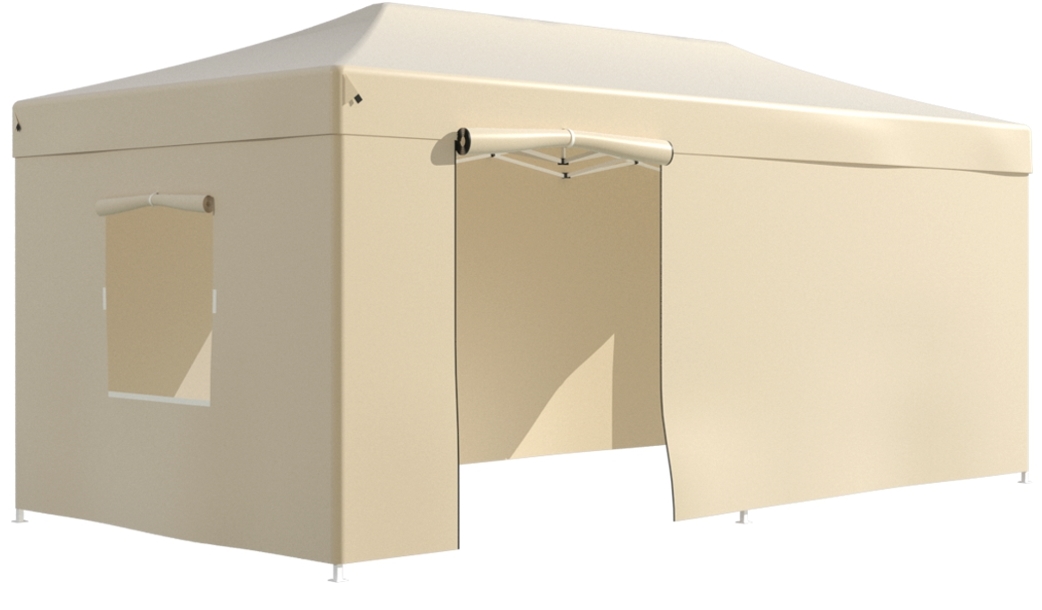 Тент садовый – практичное и популярное решение для использования на пикниках, шашлыках и кемпинге, а также в качестве дачной беседки или для уличной торговли и рекламы. Тент-шатер для сада прекрасно защищает от солнца, дождя и ветра. Тент садовый быстро раскладывается «гармошкой», его установка занимает считанные минуты. В тенте есть 1 дверь и 2 окна.