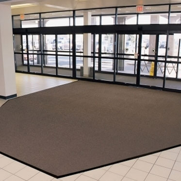 Для установки в вестибюле из рулонного покрытия изготавливаются грязезащитные ковры необходимого размера и формы. Покрытие можно окантовать специальным кантом или алюминиевым порожком.