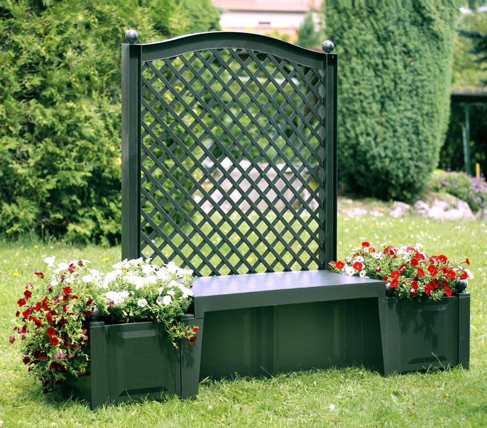 Садовая скамейка KHW Копенгаген с двумя ящиками для растений по бокам и шпалерой станет замечательным украшением вашего садового участка. В ящики-клумбы можно посадить ваши любимые цветы и растения. А шпалера будет поддерживать растения и направлять их рост. Скамейку можно использовать не только в качестве места для отдыха, но и для размещения на ней элементов декора.