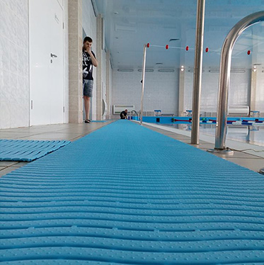 Рулонный мат Ultima - это противоскользящее покрытие для влажных помещений, таких как бассейны, сауны, душевые, раздевалки.
