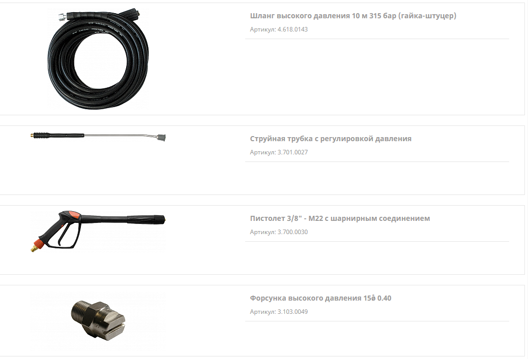 - Система подачи моющего средства (из внешней ёмкости) под низким давлением.
