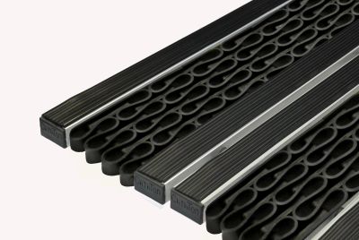 Придверные решетки ВОЛНА – это грязезащитные ковры из резинового профиля, усиленного элементами (черными или цветными) из прочного композитного материала. При разработке этого изделия учитывался изменившийся режим эксплуатации современных мегацентров, что позволило эффективно использовать решетку в местах с гиперинтенсивным потоком пешеходов и работой погрузочной техники.