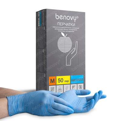 Перчатки нитриловые BENOVY Nitrile PC, 50 пар в упаковке