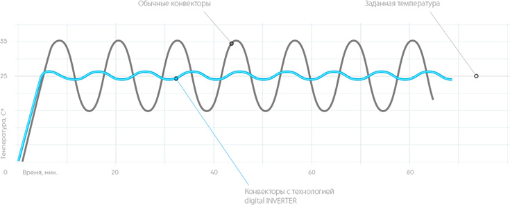 Абсолютное превосходство технологии digital INVERTER в обогреве.