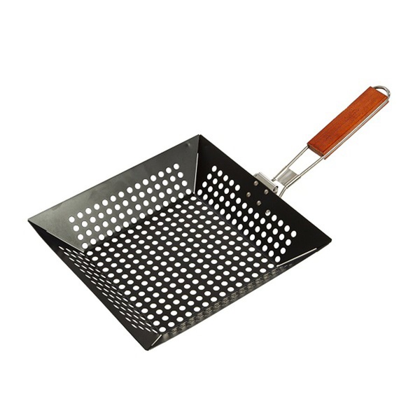 Сковорода-гриль – это удобное приспособления для приготовления вкусных блюд из мяса, рыбы на свежем воздухе с помощью углей. Имеет удобную деревянную ручку.