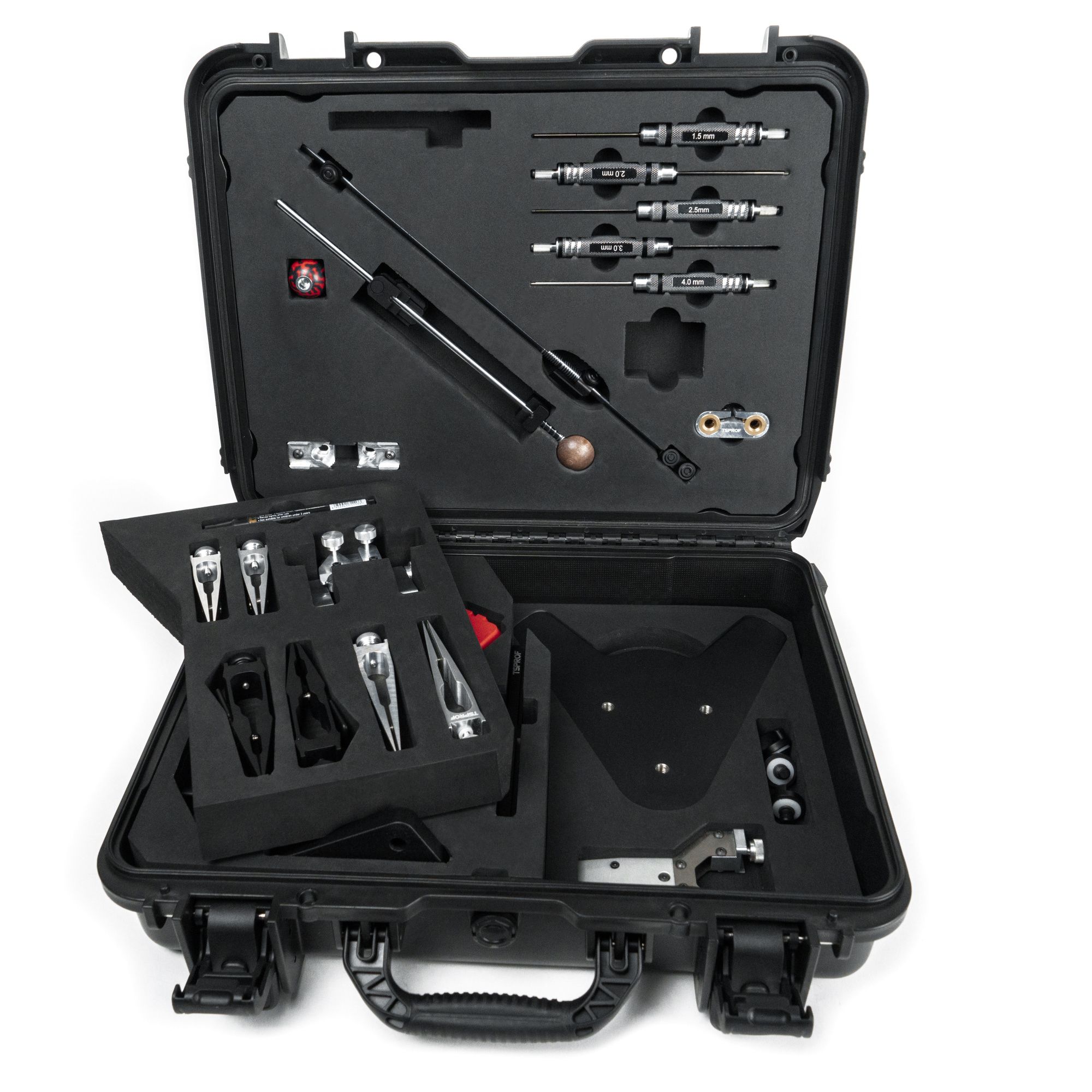 Этот уникальный комплект порадует тех, кто хочет обладать самой современной и функциональной системой заточки и всем арсеналом инструментов для решения неординарных задач. Набор поставляется в ударопрочном кейсе с долговечными ложементами из полимера ЭВА, обеспечивая надежную защиту и удобство хранения всех компонентов.