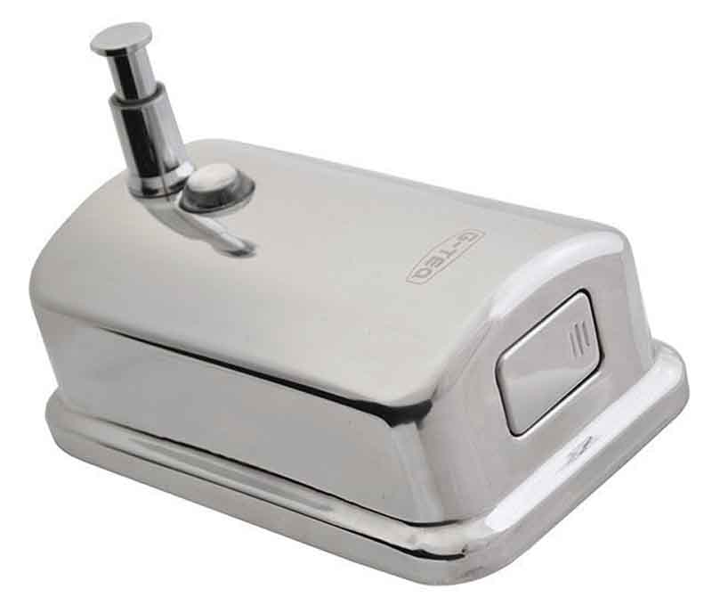 Антивандальный дозатор для жидкого мыла. Носик дозатора имеет вариант блокировки, поршень кнопки выполнени из хромированной латуни а клапан подачи из ABS термопластика. Присутствует окно контроля за расходом. Объем дозатора G-teq 8610 доступен в 3х вариантах 05, 0,8 и 1 л.