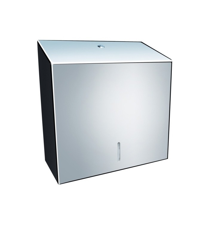 MERIDA STELLA – линейка санитарно-гигиенического оборудования европейского стандарта высокого качества для санитарной комнаты (санузла).Диспенсер Merida Stella Maxi - это диспенсер для бумажных полотенец ZZ из глянцевой фальцованной бумаги. Он изготовлен из нержавеющей стали с заподлицо и надежно закрепленным прочным цилиндрическим замком из стали, что придает ему эстетический вид, а содержимое защищено от кражи. Боковые стыки сварены и отшлифованы, петли незаметны. В дозаторе есть окошко для контроля количества полотенец. Он отлично подойдет для общественных мест и помещений с большой проходимостью. Благодаря конструкции дозатора полотенца подают по одному листу за раз, и пользователь всегда прикасается к одному листу. Вместимость до 500 шт. листовых полотенец.