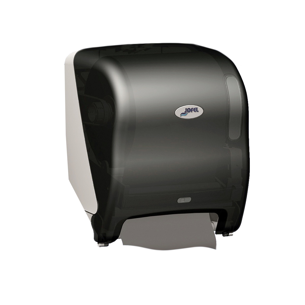 Диспенсер Jofel серия AZUR, для рулонных бумажных полотенец с автоматической подачей (оптич. датчик), рассчитан на 1 рулон (батарейки входят в комплект поставки). Диспенсер для рулонных бумажных полотенец, оснащен автоматической подачей (оптический датчик), что делает эксплуатацию устройства более удобной. Диспенсер бумажных полотенец прост в установке, обслуживании и эксплуатации. За счет отсутствия прямого доступа ко всем салфеткам обеспечивается высокая гигиеничность изделия, так как прикосновению подвергается лишь одна салфетка.