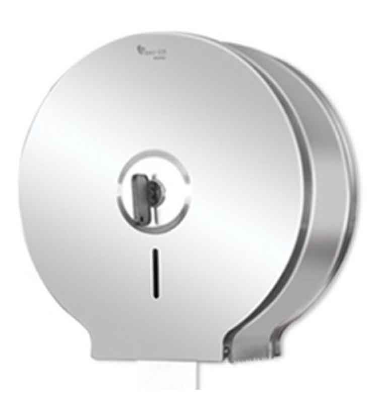 Металлический диспенсер для туалетной бумаги.