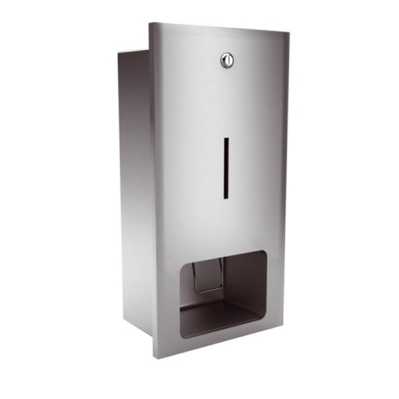 Емкость сменного картриджа 880 мл на 1500 порций пены. Корпус дозатора изготовлен из матовой нержавеющей стали. Мыло подается в виде нежной пены. Герметичный картридж исключает возможность заражения через мыло. Имеется окошечко для контроля наличия жидкого мыла. Закрывается на ключ.