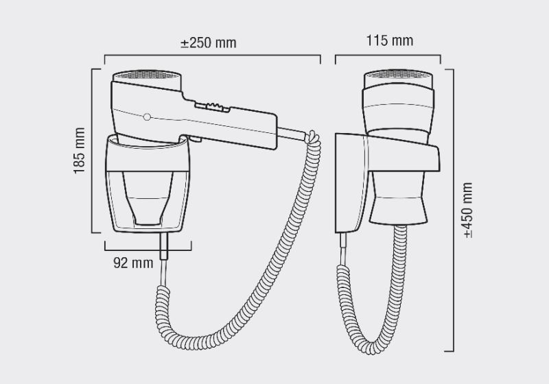 Фен подключается напрямую к электросети – шнура с вилкой нет.