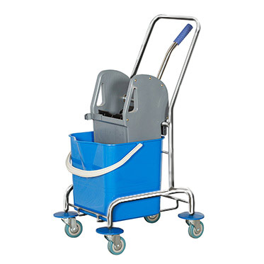 Преимущество тележки уборочной 02.127 – наличие механического отжима. Это позволяет насухо отжимать тряпку при уборке полов, делать это быстро и не подвергать при этом руки контакту с грязной водой. Ведро у тележки ударопрочное, внутри нанесена шкала, с помощью которой легко рассчитать требуемое количество моющего раствора. В стальную раму с хромированным покрытием вделаны колесики, благодаря чему тележка очень маневренна. Все ее части прошли специальное тестирование на прочность, что гарантирует отсутствие поломок и надежную службу оборудования на протяжении многих лет.