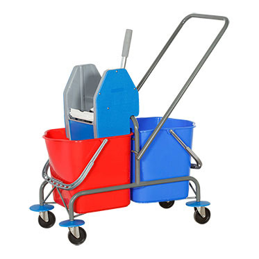 Тележка предназначена для уборки пола любых помещений, как основной, так и поддерживающей в течение дня. Ведра по 25 л, с мерной шкалой (для разбавления моющего раствора без применения дополнительной емкости), позволяют наполнить их необходимым количеством воды или моющего раствора, что позволяет легко, без брызг полоскать моп во время уборки. В одном из ведер находится чистая вода или моющий раствор, а в другое стекает грязная вода с отжимаемого в отжиме мопа. Механический отжим тележки освобождает руки от контакта с водой, а также от лишних усилий прилагаемых к отжиманию.