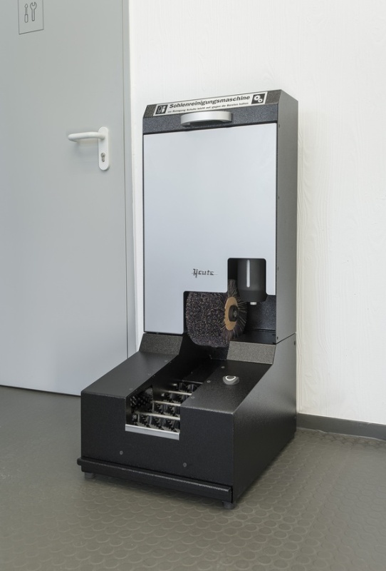 Крем для полировки обуви подается через дозатор. Счищенная грязь попадает в большой лоток для сбора грязи под щетками. Этот лоток можно легко очистить. Ременная передача обеспечивает тяговое усилие и плавный ход.