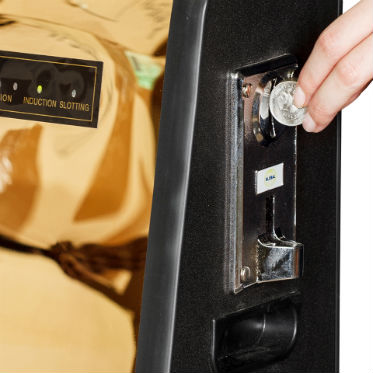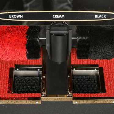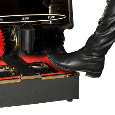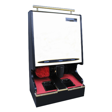 У машинки имеется электронное табло и монетоприемник, рассчитанный на прием монет номиналом от 1 до 10 рублей. Стоимость сеанса вы можете настроить самостоятельно, а длится он 60 или 90 секунд (как установлено изготовителем). Сдачи аппарат не выдает. Процесс чистки осуществляется прочными щетками из синтетической шерсти, в ходе сеансе обувь не только чистится, но и полируется бесцветным кремом.