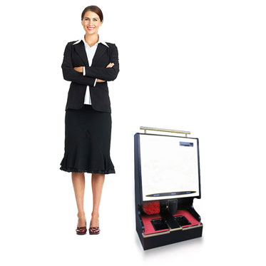 Благодаря современному стильному дизайну Вендинговый аппарат для чистки обуви XLD-XDWC(gold) отлично впишется в интерьер отелей, посольств, бизнес-центров, административных зданий, ресторанов. По размеру он совсем не большой, но очень удобный в эксплуатации, а для устойчивости и сохранения равновесия клиента снабжен ручкой.