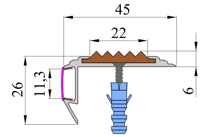 Антискользящий профиль-порог против скольжения со светодиодной подстветкой предназначен для установки на углах ступеней лестниц в качестве профиля безопасности против скольжения и как декоративная отделка.