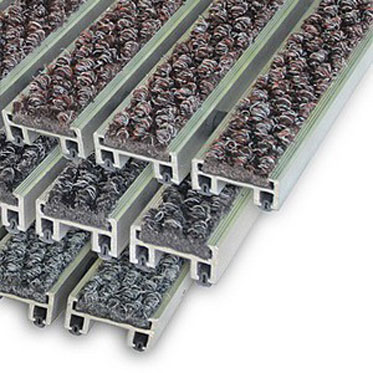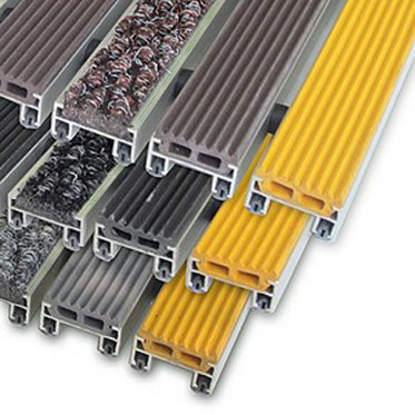 Для большего очищающего и антискользящего эффекта между полосами профиля может быть закреплён алюминиевый скребок.