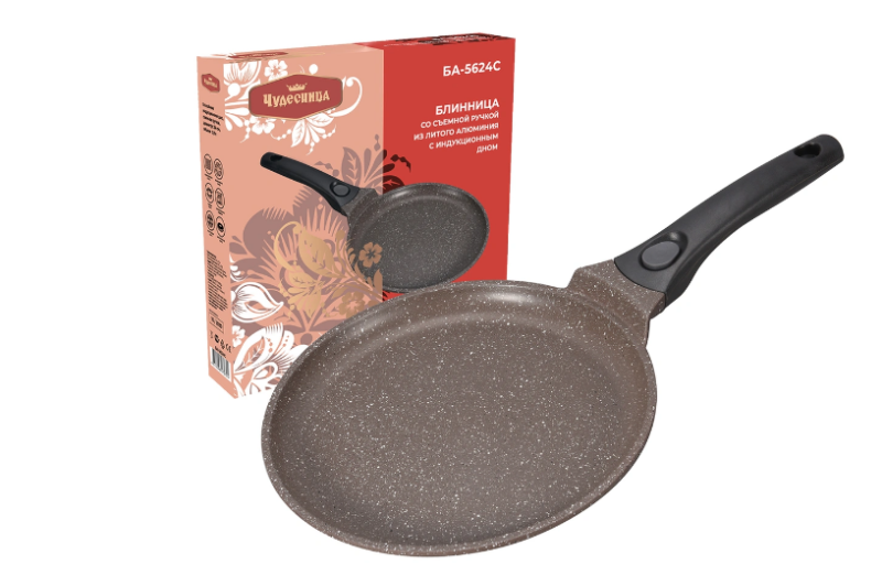 Блинница ЧУДЕСНИЦА из литого алюминия, толщина 5мм, 3-х слойное антипригарное мраморное покрытие, 5-ти слойное капсулированное индукционное дно.