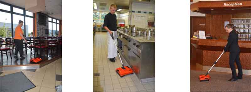 Миниатюрная и мощная аккумуляторная подметальная машина для быстрой уборки напольных покрытий в помещениях. Идеально подходит для гостиничных холлов, залов ресторанов и кафе, торговых залов магазинов. Незаменима везде, где может возникнуть необходимость быстро и собрать с пола мелкий мусор, осколки стекла и т.д. Может использоваться на улице.