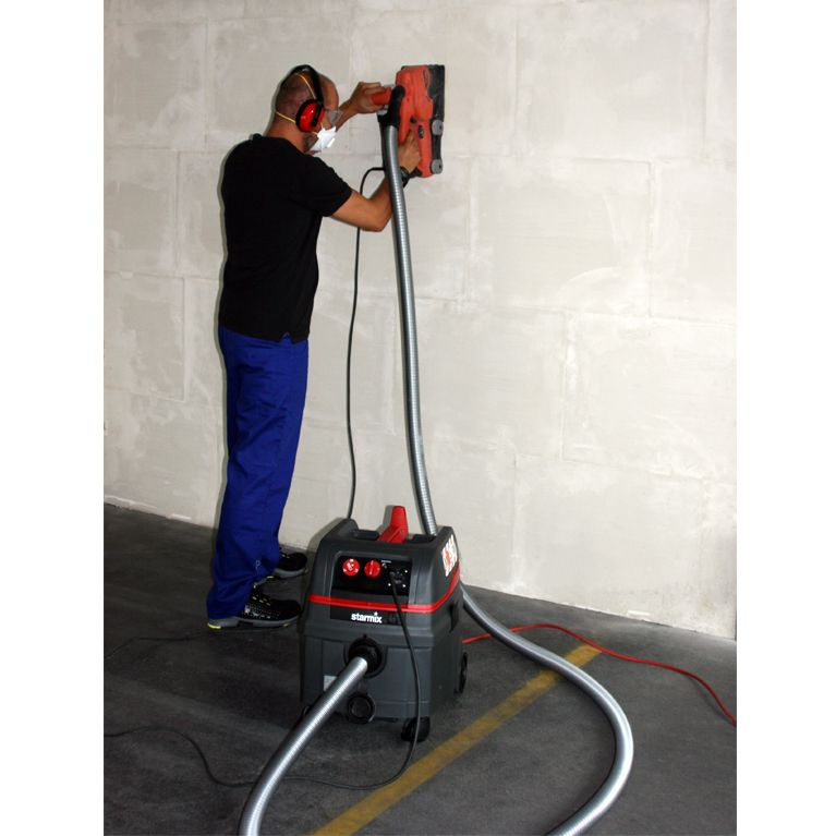 Starmix ISC M 1625 Safe - это обновленная, популярная модель строительного пылесоса Starmix ISС ARM 1625 EWA Compact. Основным отличием новой модели от предыдущей является более производительная турбина, обладающая лучшими характеристиками (разрежение 280 мбар, расход воздуха 75 л/сек.). Данный строительный пылесос с легкостью справляется с мелкой строительной пылью, даже без использования мешков для сбора пыли. В тоже время его можно использовать как с флисовым мешком, так и с полиэтиленовым "мешком".