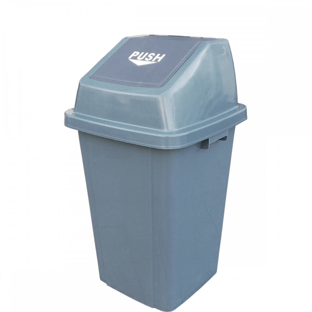 Контейнер для отходов с поворотной крышкой, серый из полипропилена, серый, предназначен для сбора, хранения и транспортировки мусора и различных пищевых отходов, с укладыванием в него мусорного пакета соответствующего объёма. Применяется в местах первичного сбора отходов.