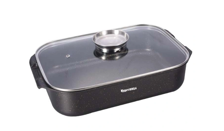 Утятница с крышкой ЧУДЕСНИЦА это отличный помощник для любой хозяйки. Литой алюминий, стеклянная крышка с системой Aroma-фильтр, объем 5,6л, толщина 5мм, размер 34х24х8,5см, 3-х слойное антипригарное мраморное покрытие, 5-ти слойное теплоаккумулирующее дно, подходит для всех видов плит, включая индукционные, можно мыть в посудомоечной машине, литые ручки с силиконовыми накладками.