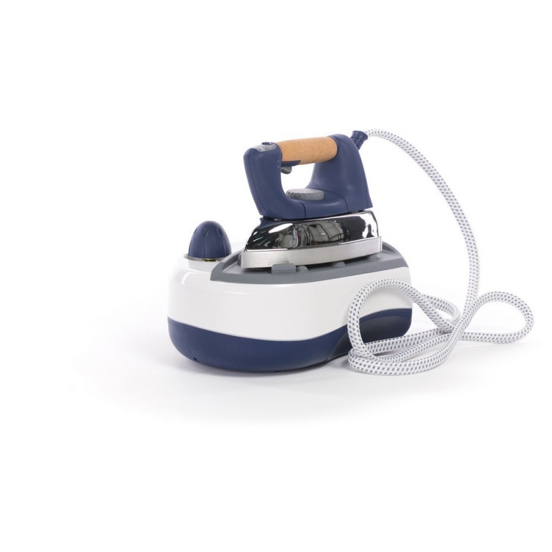 Утюг прибора – профессиональный, с пробковой ручкой, двумя кнопками подачи пара и толстой подошвой, которая прогреваясь осуществляет максимальный результат утюжения.