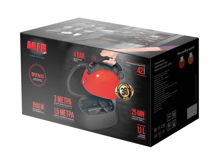 Уборка с MIE Juno отличается экологичностью, скоростью и простотой. Стильный пароочиститель Juno, выполненный в корпоративных цветах MIE, имеет привлекательный внешний вид и компактные размеры. Технические характеристики прибора отличаются высокой мощностью.