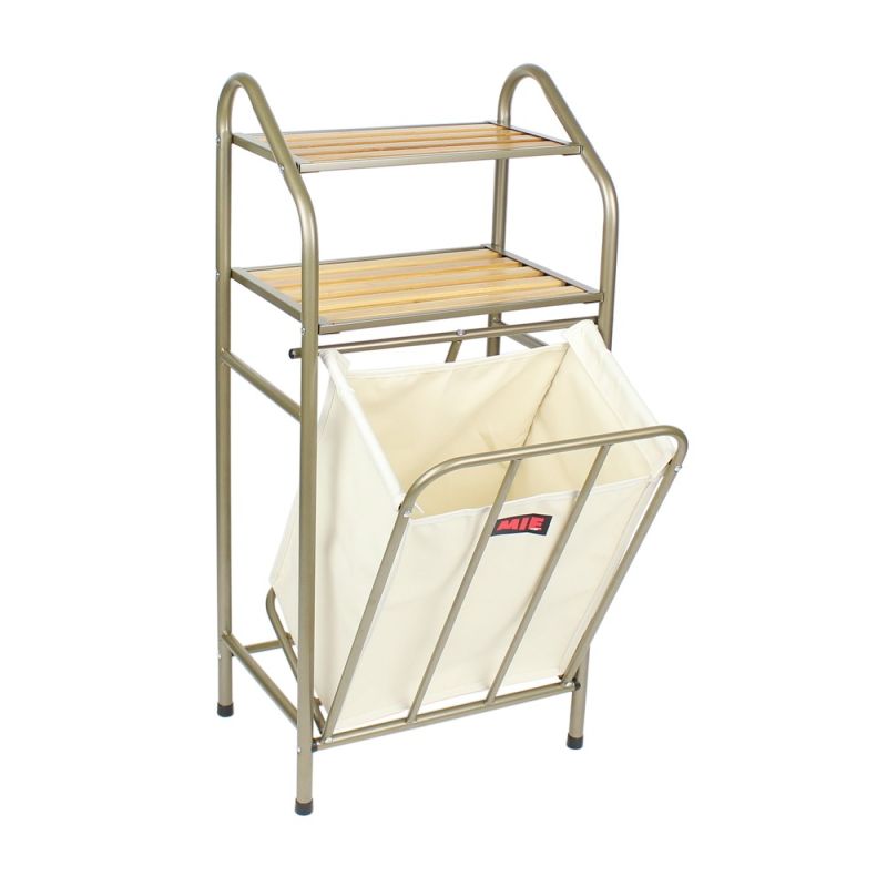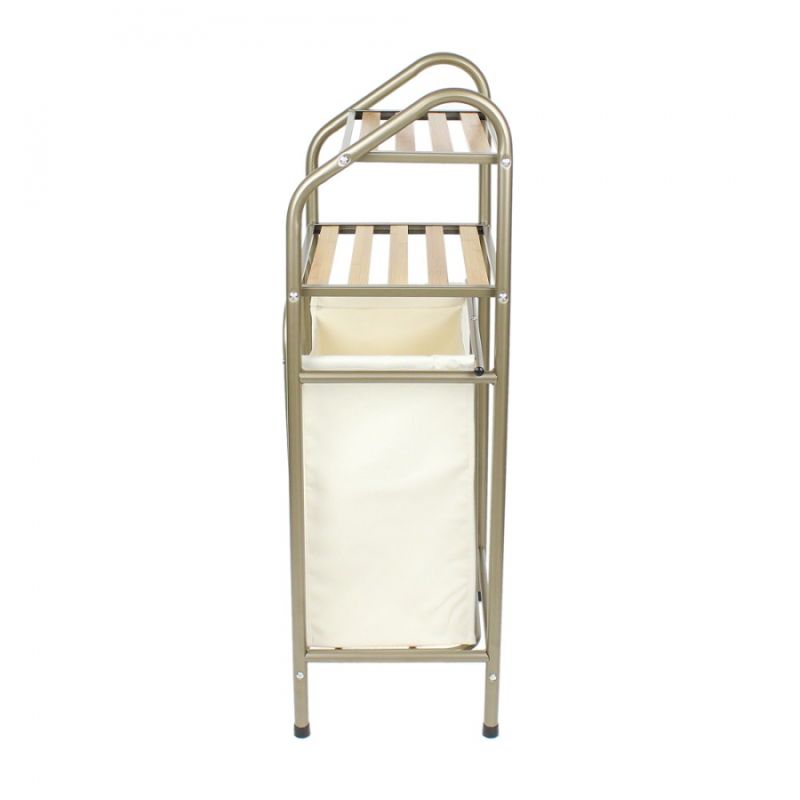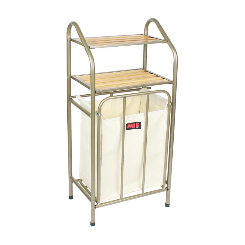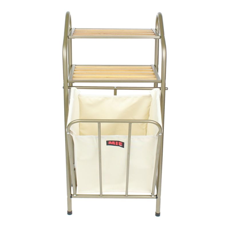 Настоящей находкой для ванной комнаты или гардеробной станет этажерка с корзиной для белья MIE Bitetto! Изящная конструкция с двумя деревянными полочками, стальным каркасом и текстильной корзиной идеально впишется в интерьер любого помещения и не займёт много места.