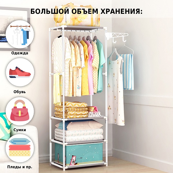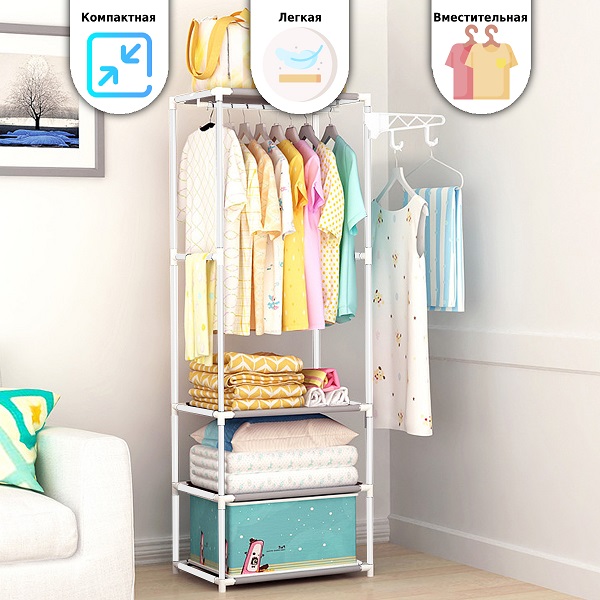 Простая и легкая напольная вешалка с крючками позволит хранить все необходимые вещи рядом. Вмещает в себя большое количество вещей, позволяя грамотно вписать ее в любое пространство. Специальные передвижные крючки можно использовать для хранения сумок, шапок, а также мелких аксессуаров. Передвижные крючки вешалки поворачиваются на 360 градусов.
